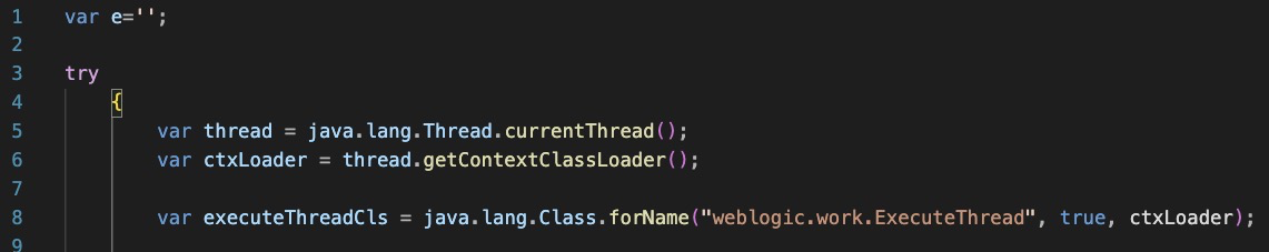 Get’s the execution context of the current Oracle Weblogic server. This will allow the javascript to execute inside that current process and not drop additional files to disk.