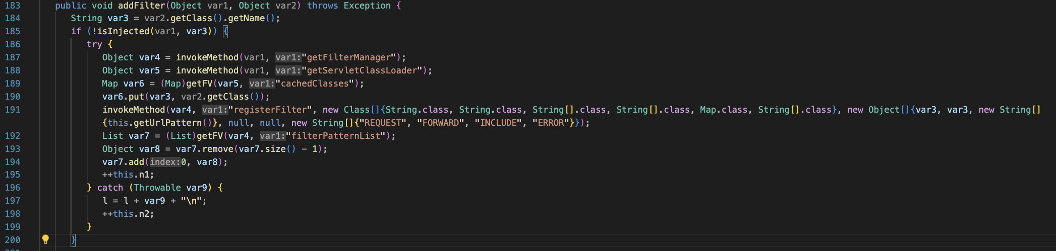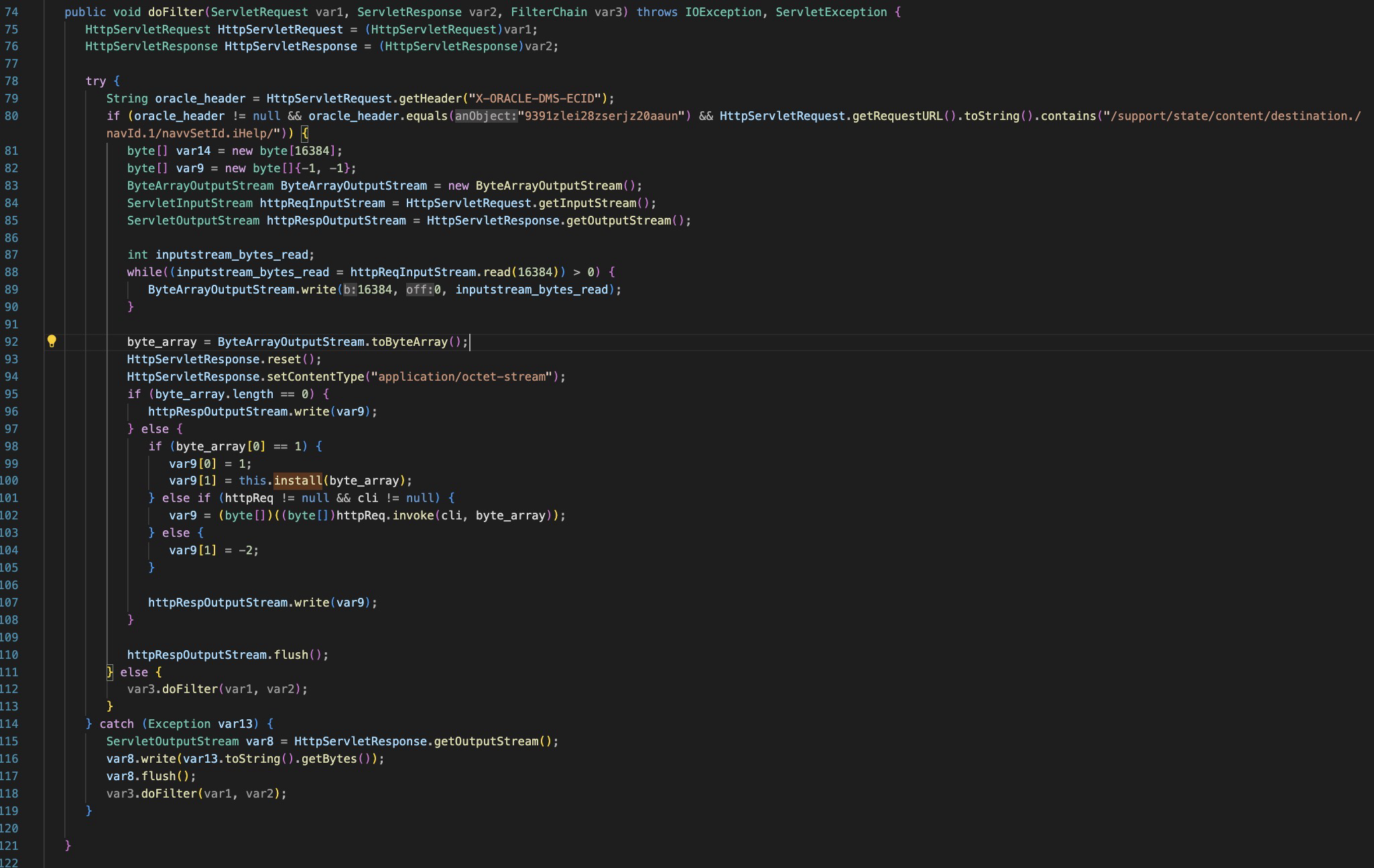 The ‘doFilter’ function checks for incoming POST requests and if they match a specific header value: